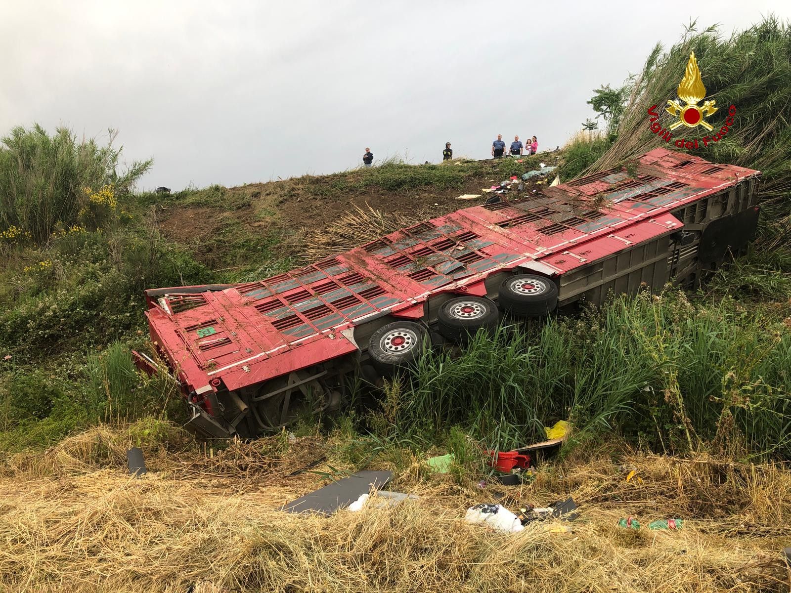 Grosseto: camion con 56 vitelli si rovescia. Feriti autista e sua moglie. 30 animali morti: gli altri scappati