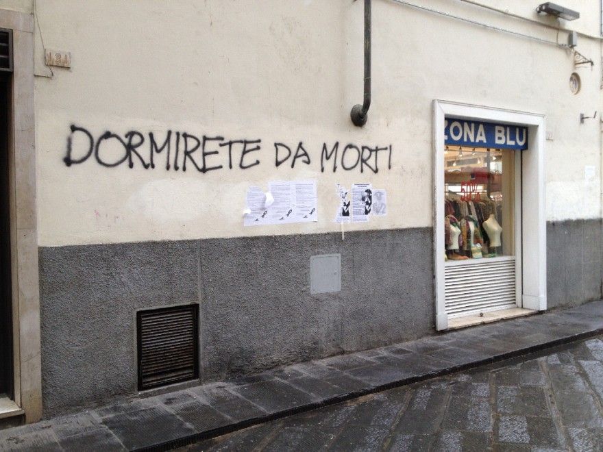 Sul muro di fronte al trippaio di via dei Macci era vergata una grande scritta in stampatello a lettere nere: «Dormirete da morti». Forse una risposta agli inviti al silenzio...