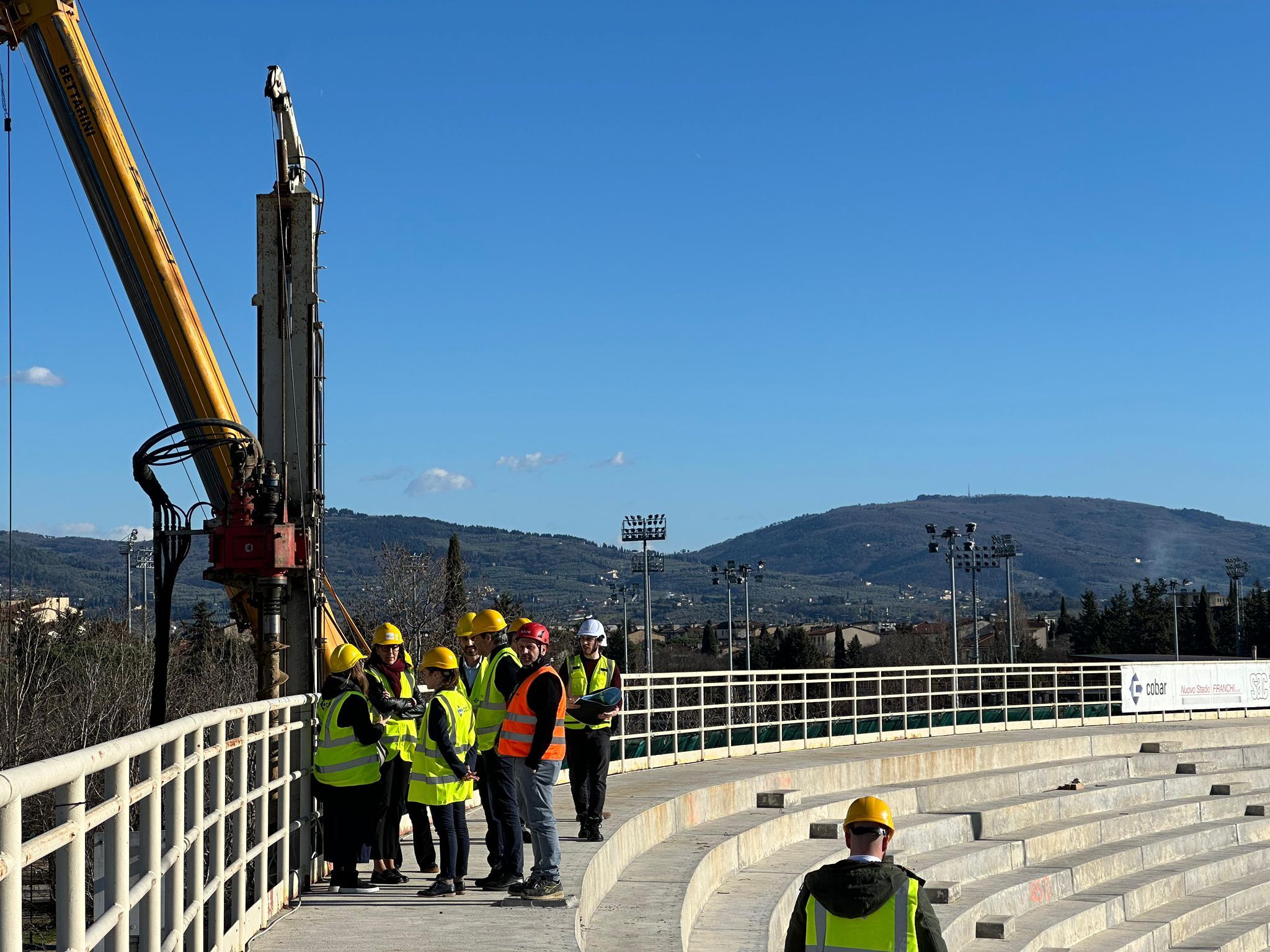 Stadio Franchi: posa della maxi trave. Sopralluogo di Uefa e Figc in vista di Euro 2032