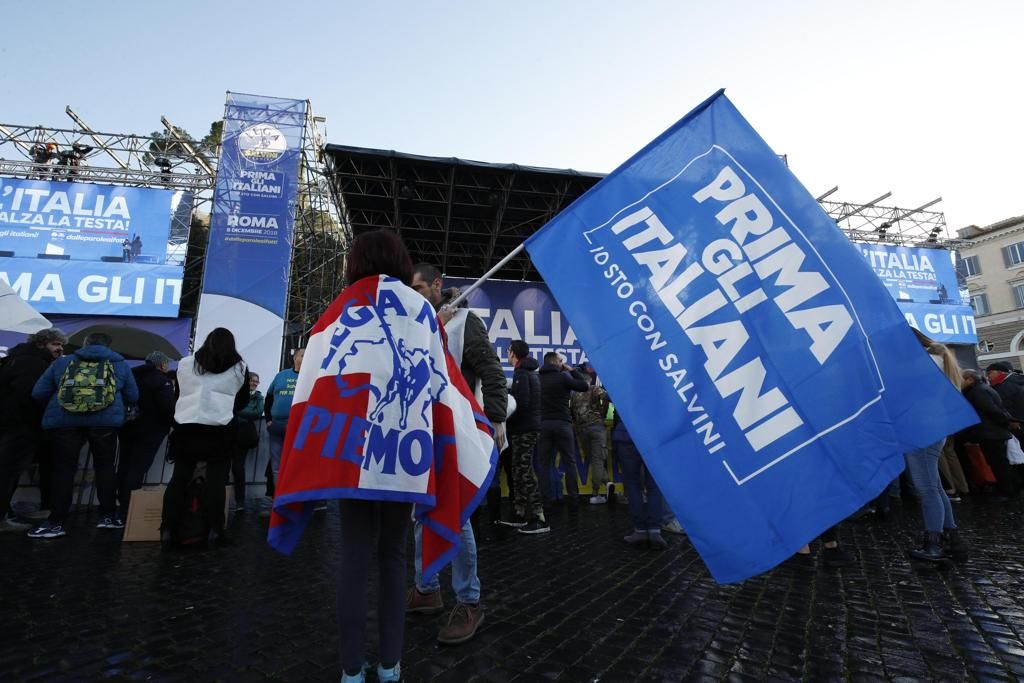 A piazza del Popolo a Roma la kermesse della Lega «L'Italia alza la testa». Il clou alle 12 con l'intervento del segretario federale e ministro dell'Interno Matteo Salvini