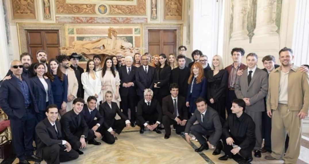 Festival di Sanremo: Conti, Pausini e cantanti al Quirinale sulle note di Azzurro. Mattarella: “La musica pop patrimonio italiano”