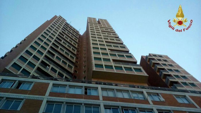 Livorno: incendio nel grattacielo. Vigili del fuoco acrobati si calano con le corde