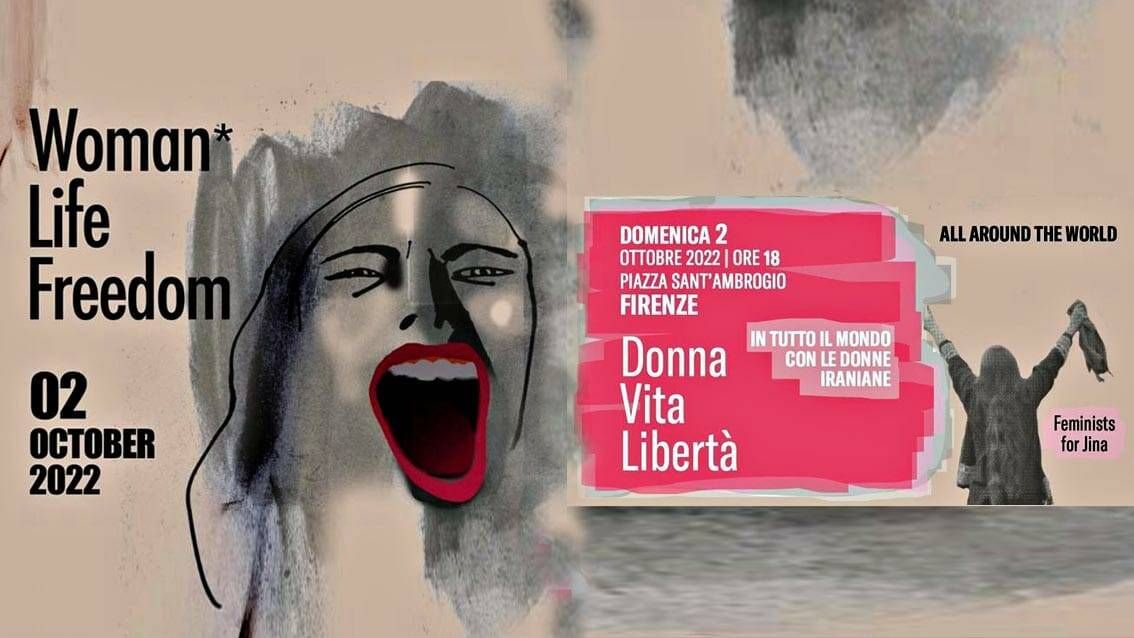 I fiorentini sono schierati con le donne iraniane. Piazza Sant'Ambrogio gremita, oggi 2 ottobre 2022, per la manifestazione di protesta contro il regime iraniano dopo la morte...