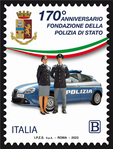 Per celebrare il 170.mo anniversario della Polizia di Stato è stato emesso, oggi 10 aprile 2022, un francobollo, valido per la posta ordinaria. La vignetta...