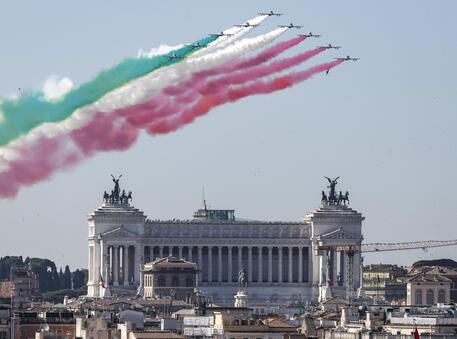 2 giugno: Mattarella all’Altare della Patria. La bandiera disegnata dalle Frecce tricolori. Il “Volo” canta l’Inno