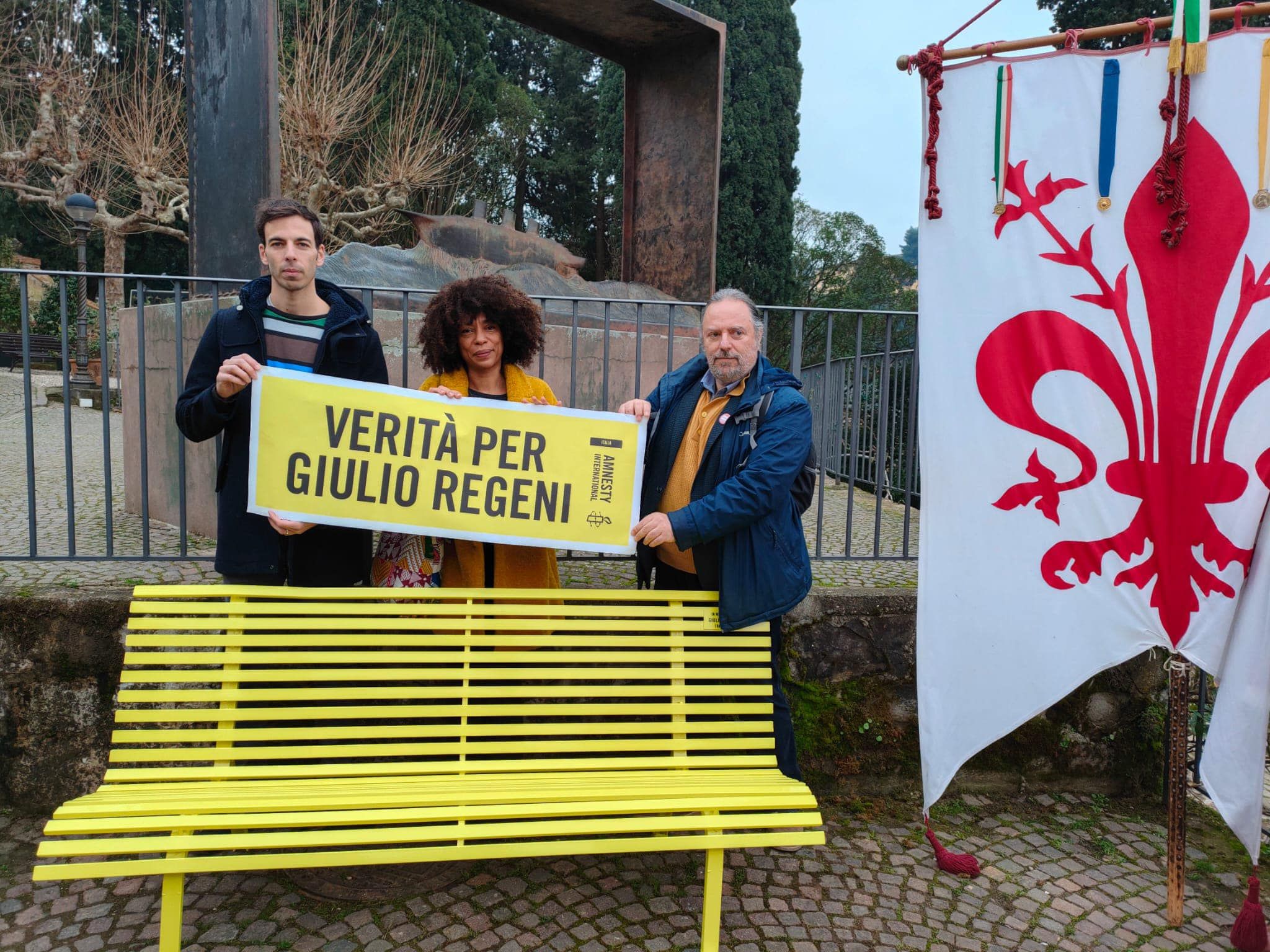 Il Comune di Firenze, a otto anni dal suo rapimento, avvenuto il 25 gennaio 2016, commemora Giulio Regeni installando una panchina gialla nel Giardino delle Rose