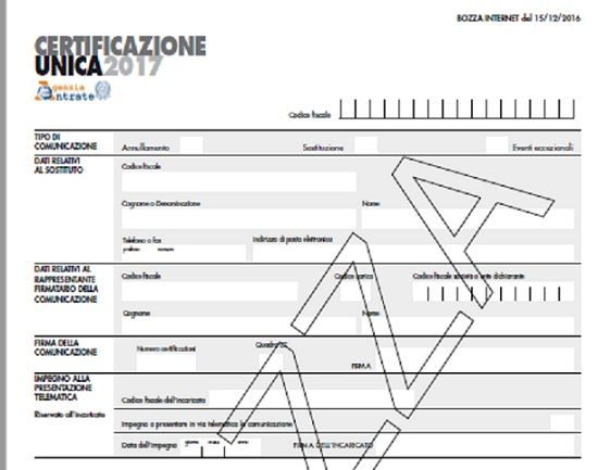 - Nessun commento su Fisco: bozza certificazione unica 2017 on line sul sito delle entrate