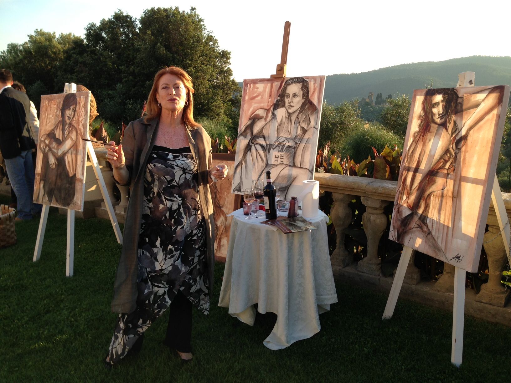 L'artista fiorentina realizzerà in diretta un dipinto «wine-made» davanti a una platea di 150 invitati. Una mostra ed un interessante appuntamento gastronomico.