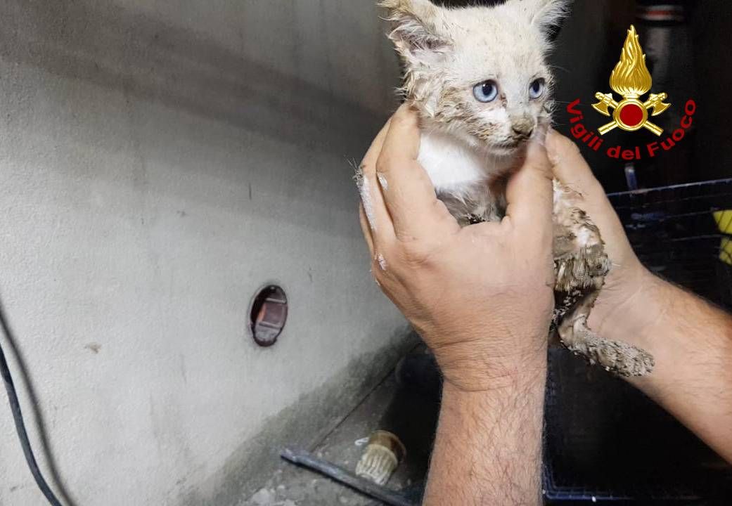 Lucca: gattino incastrato in un tubo di scarico. Salvato dai vigili del fuoco