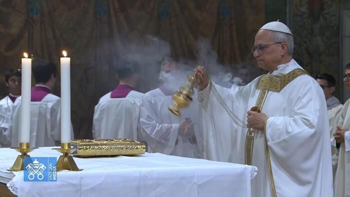 Prima messa di Papa Prevost nella Cappella Sistina. Con Leone XIV concelebrano tutti i cardinali, elettori e non elettori. Sono in inglese e spagnolo, la prima e la seconda...