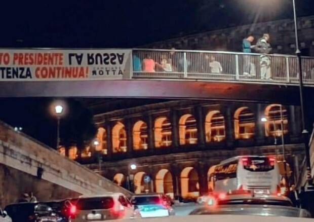 Altre scritte, a Roma, contro il neo eletto presidente del Senato, Ignazio La Russa. Dopo la stella a cinque punte, uno striscione è stato esposto a Roma nei pressi del...
