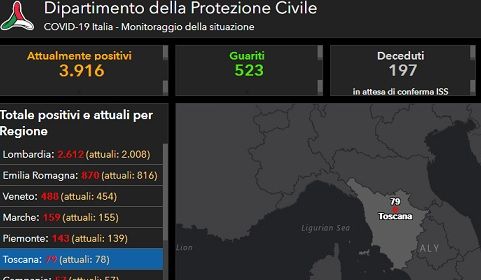 Coronavirus in Toscana: prima vittima, una 79enne malata. Sono 53 i nuovi casi