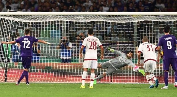 Viola in gol sl 38' su punizione di Alonso, concessa per fallo di Ely (già ammonito) su Kalinic. Rossoneri in dieci. Raddoppio all'11' della ripresa su rigore di Ilicic, che...
