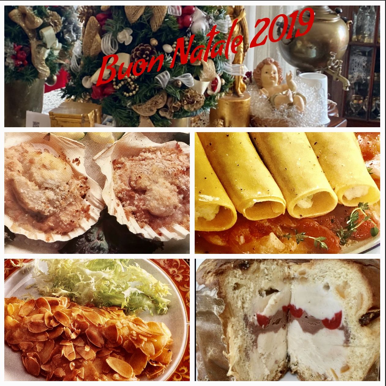 Cappesante salmonate, cannelloni di pesce, filetto di pesce con impanatura croccante alle mandorle e, per finire, panettone farcito alla crema tiramisu.