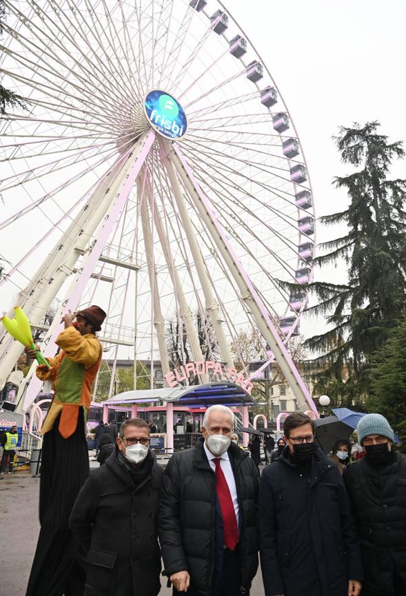 Ruota panoramica alla Fortezza: alta 55 metri, con 42 cabine. Fino a metà gennaio