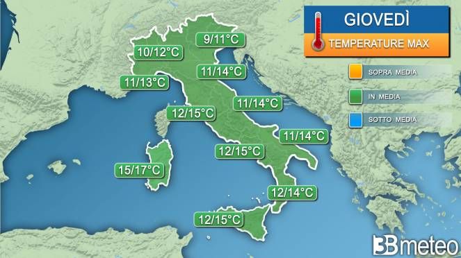 Sono gli ultimi scampoli dell'ondata di freddo, i termometri risaliranno ulteriormente fino a portarsi sopra media nel weekend