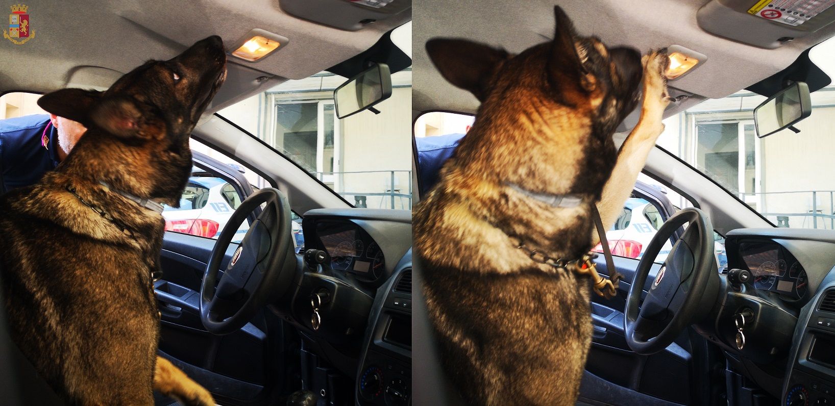 Firenze: cocaina nella luce di cortesia dell’auto. Scoperta da Mia, cane antidroga. Due arresti