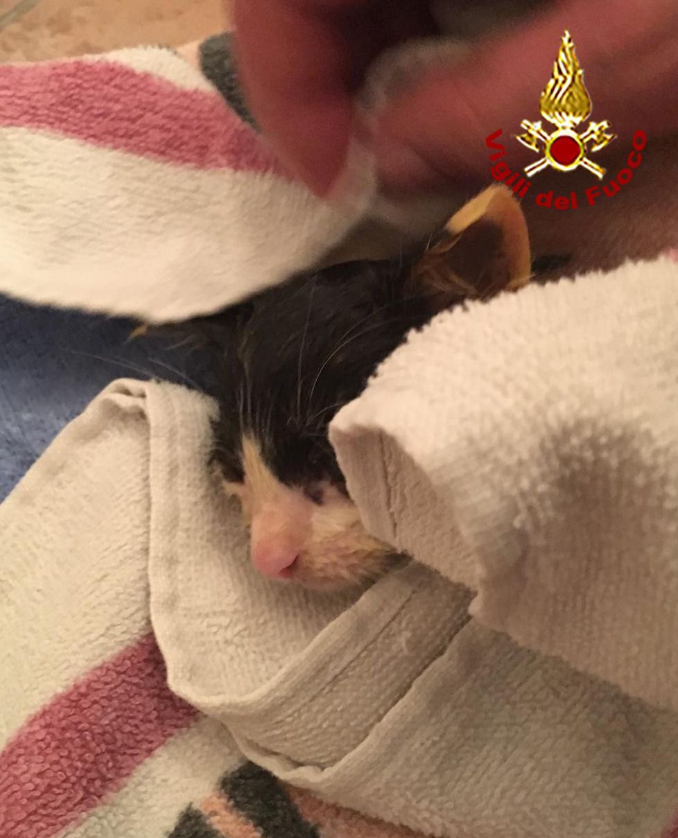 Grosseto: gattina randagia cade in un tubo, salvata dai Vigili del fuoco