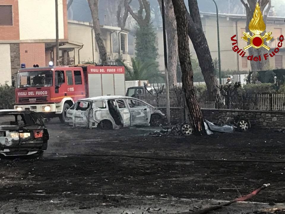 Nel rogo sono andate distrutte una decina di macchine (ma si teme possano essere di più) parcheggiate lungo la strada, probabilmente di proprietà di chi abita in alcune villette...