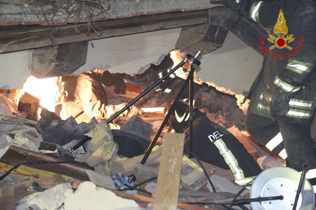 Un boato avvertito anche da lontano e la casa venuta completamente giù: due bambine e il padre salvi, la madre trovata morta, dopo ore di scavi, sotto le macerie