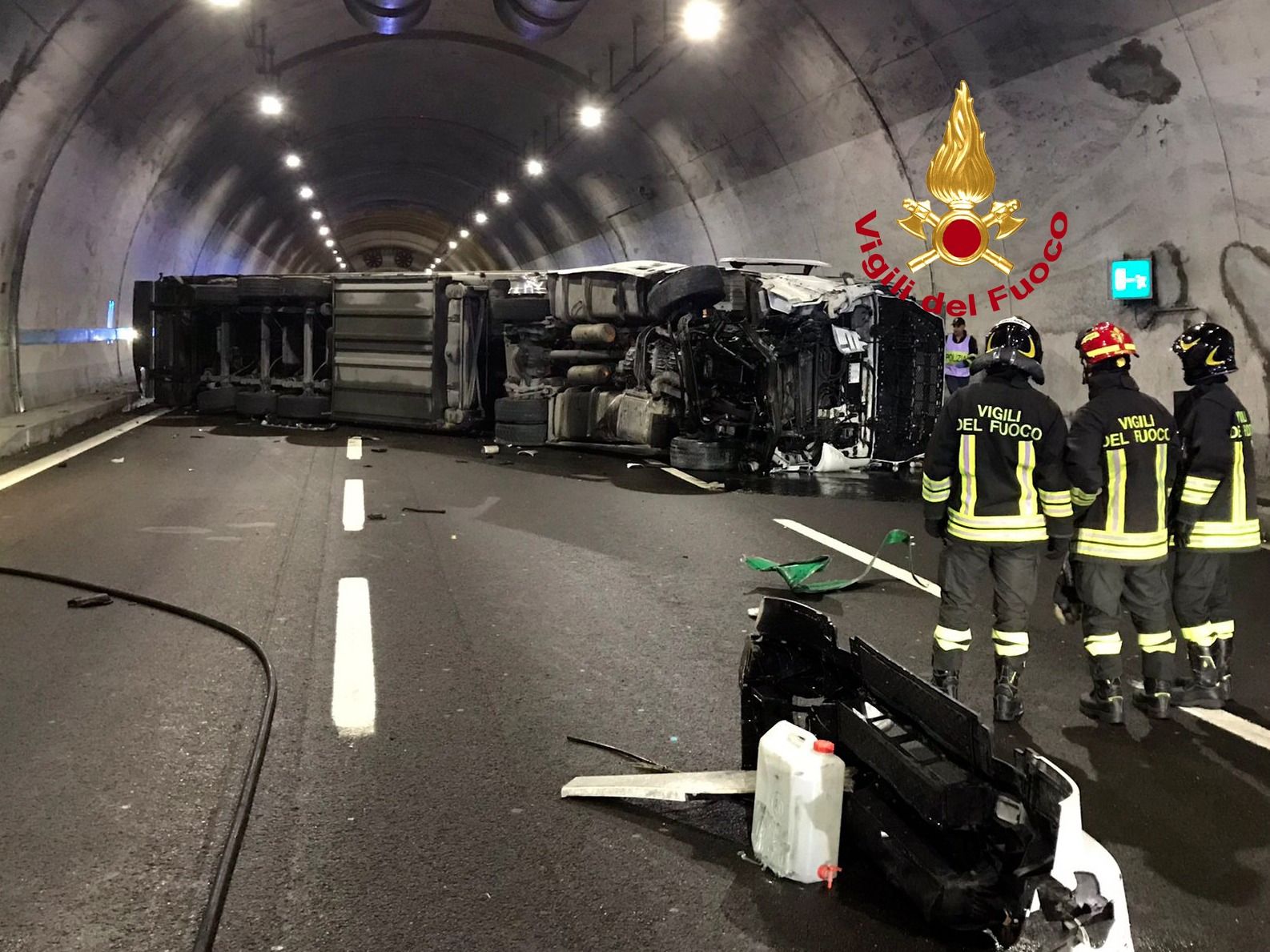 Autostrada A1: tir si ribalta nella galleria Manganaccia a Barberino di Mugello