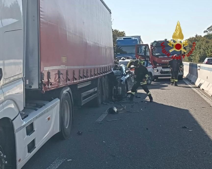 Cortona: scontro tir-auto sul raccordo Perugia-Bettolle. Un ferito