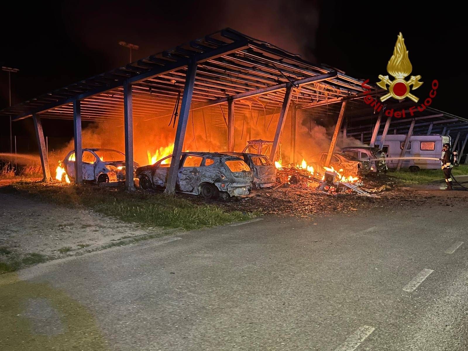 Arezzo: auto e camper in fiamme di notte a Loro Ciuffenna