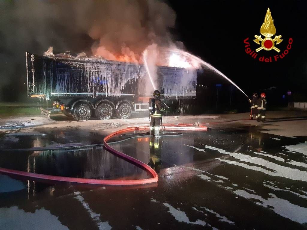 Altopascio: a fuoco tir carico di ferro in sosta a Marginone