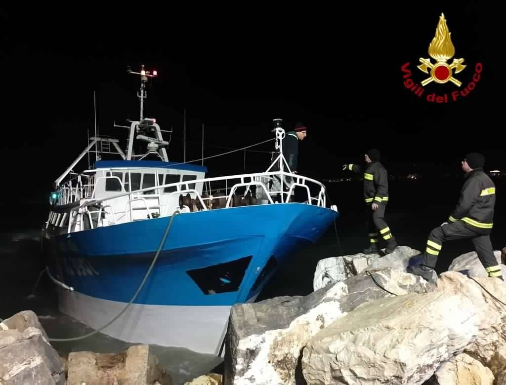 Viareggio: peschereccio sbatte sugli scogli. Danni gravi. L’intervento del rimorchiatore