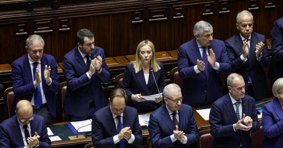 "Sulle spalle il peso di prima donna premier". Giorgia Meloni, emozionata e determinata nella poltrona di presidente del consiglio, a Montecitorio: "Non vogliamo frenare Ue ma...