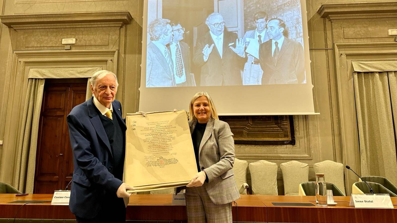 Centenario Unifi: consegnata a Cosimo Ceccuti la pergamena di laurea di Giovanni Spadolini