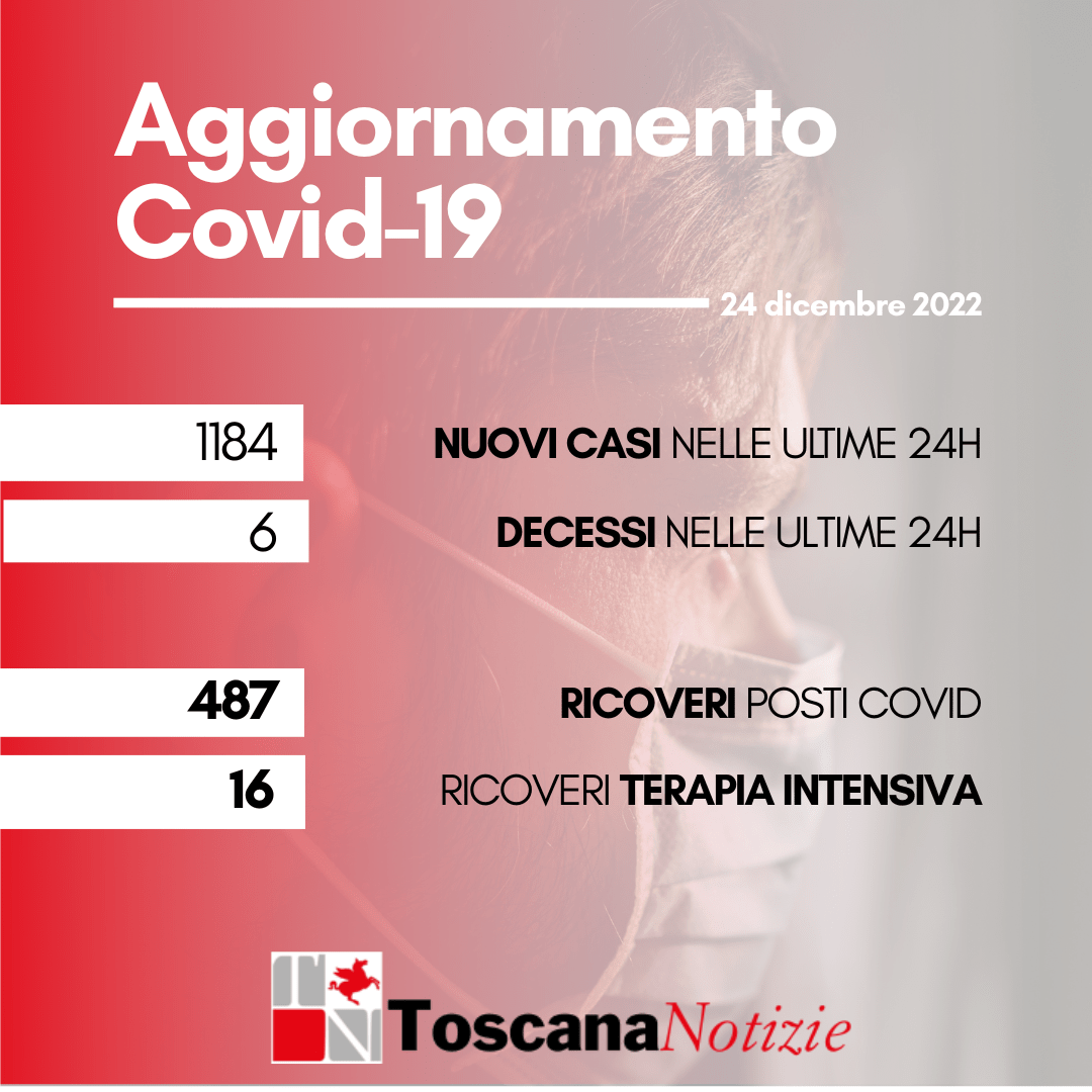 Anche la vigilia di Natale, oggi 24 dicembre 2022, si registrano 6 morti per covid in Toscana. Si tratta di cinque uomini e una donna con età media di 79 anni. Sono 1.184 i...