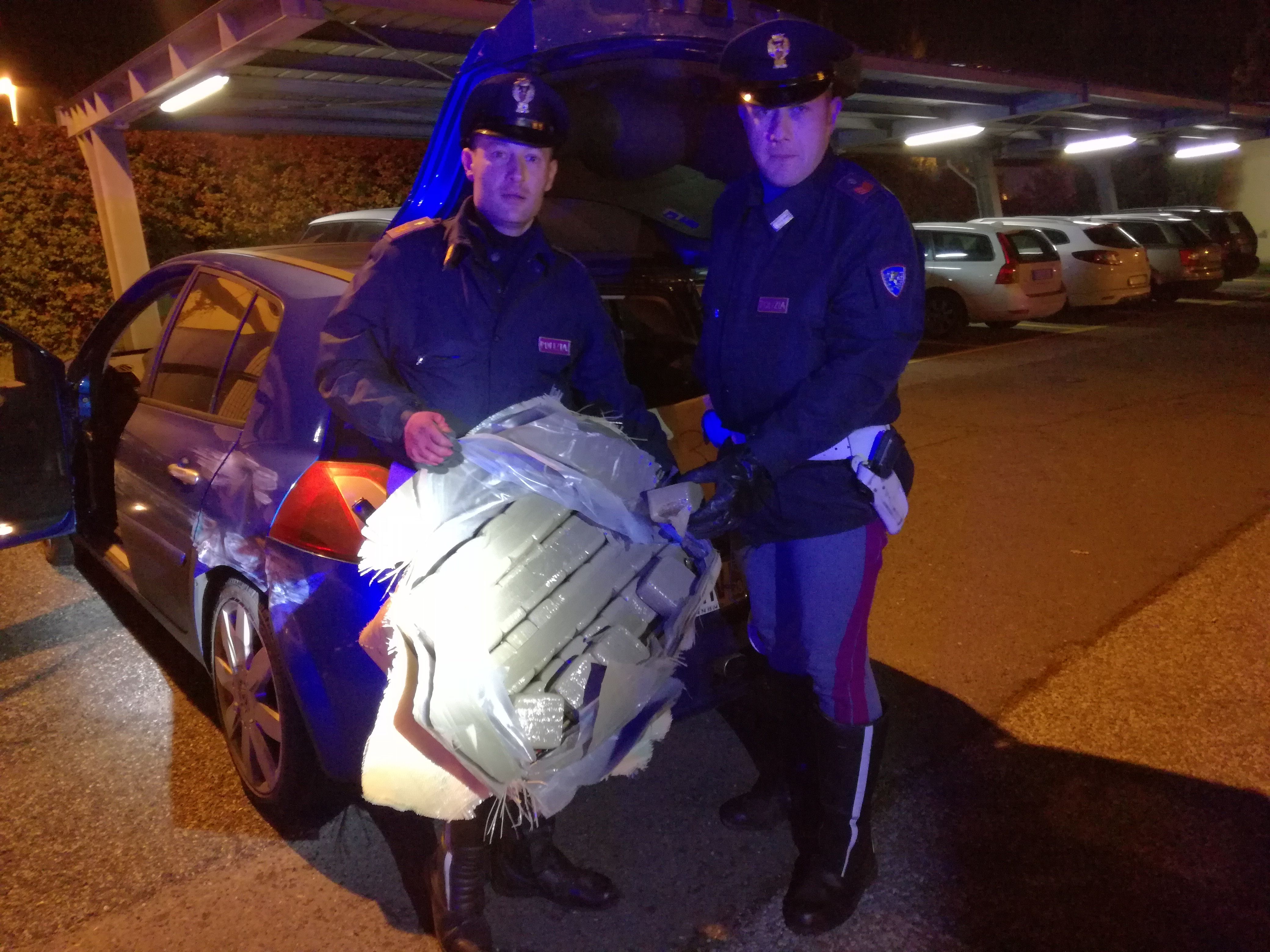 Arezzo: auto sospetta inseguita e bloccata dalla Polstrada. All’interno 2 q.li di hashish