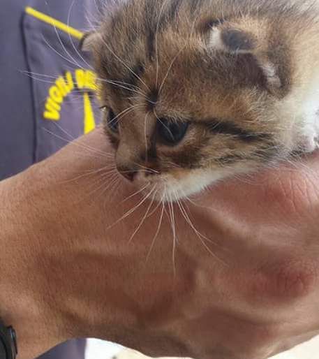 A sentire il miagolio è stata una signora che ha subito avvisato i vigili del fuoco. L'intervento immediato ha consentito di salvare il cucciolo ancora da svezzare
