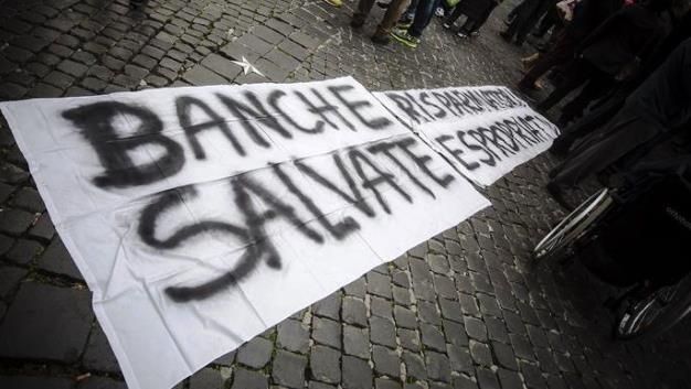 Sotto la sede centrale. Ce l'hanno con Bankitalia, Consob, Governo e banchieri, dopo aver perso tutto a seguito del decreto con cui Palazzo Chigi ha evitato il crac...