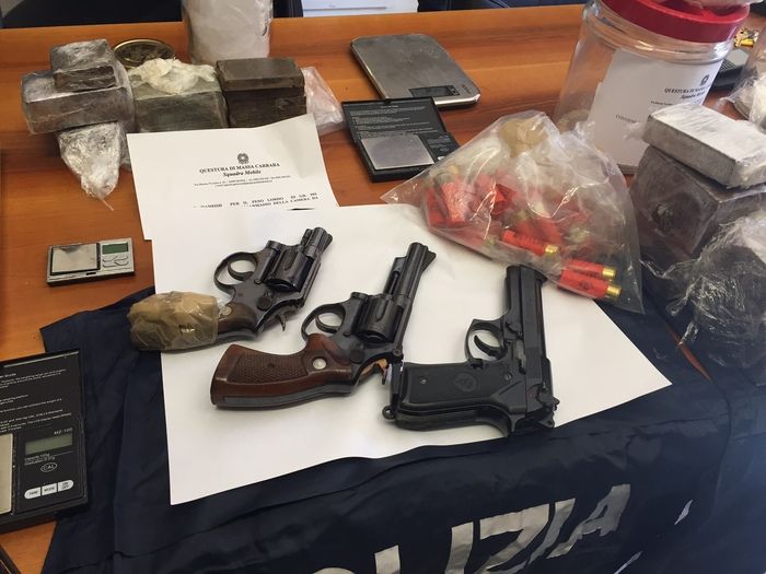 20 chili di hashish, 400 grammi di cocaina, 40 di eroina, tre pistole risultate rubate, tre fucili, munizioni varie e 10 mila euro in contanti sono stati sequestrati dalla...