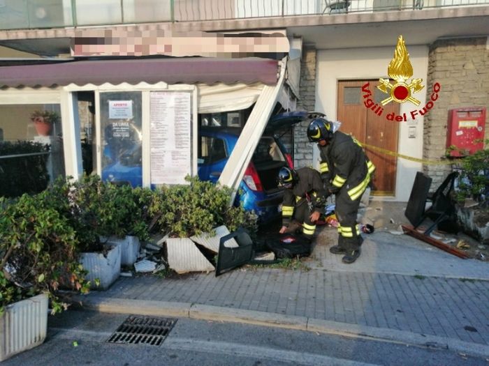 Sul posto sono intervenuti il personale del 118 e i vigili del fuoco per mettere in sicurezza l'auto coinvolta e le strutture esterne della pizzeria