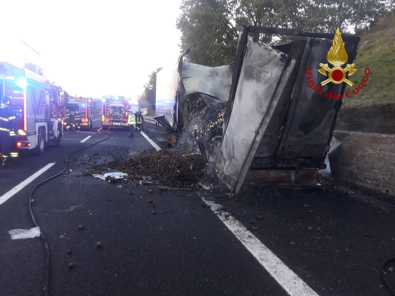 Autostrada A1: tir in fiamme tra Valdichiana e Monte San Savino. Lunghe code e disagi