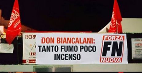 Montecalvoli: striscione di Forza Nuova contro Don Biancalani, tanto fumo e poco incenso