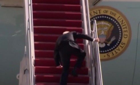 Biden cade tre volte salendo le scale dell’Air Force One (video)