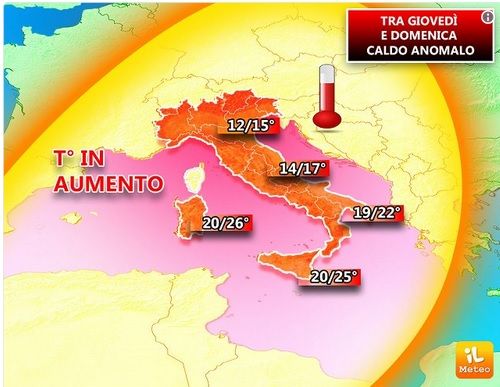Il team del sito iLMeteo.it avvisa che, da sabato e per i successivi 4-5 giorni, le temperature saranno in costante aumento con valori massimi che supereranno i 32-34°C in molte...