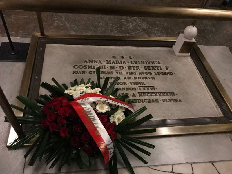 Firenze: un mazzo di fiori sulla tomba di Anna Maria Luisa de’ Medici nel 274° anniversario della morte