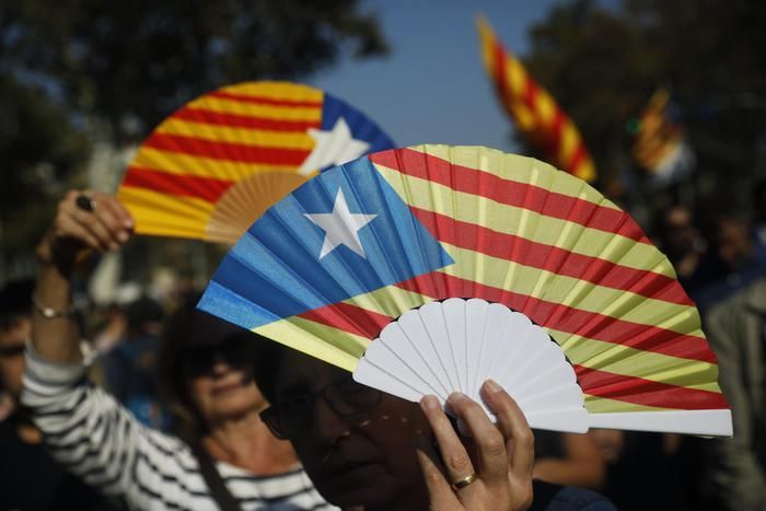 La manifestazione convocata dal Tavolo per la Democrazia contro il commissariamento della Catalogna deciso da Madrid e contro la detenzione dei due leader indipendentisti