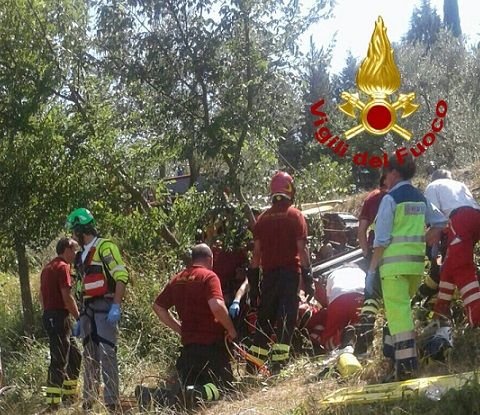 L'agricoltore, che ha riportato gravi traumi, è stato estratto da sotto il mezzo dai vigili del fuoco e trasportato a Firenze