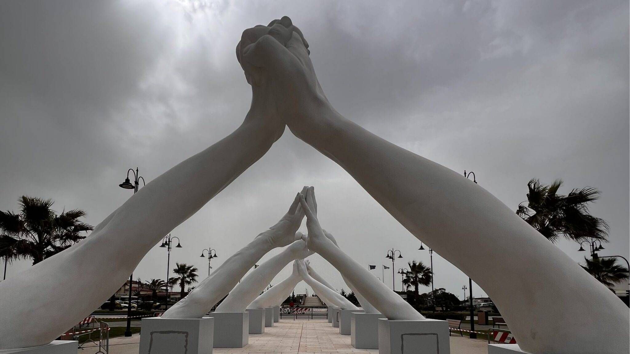 Le sei paia di mani giunte, che si elevano fino a quattro metri da terra, simboleggiano i nostri bisogni e desideri comuni