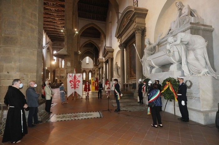 Due corone del Comune di Firenze e di Ravenna sono state deposte al cenotafio della basilica di Santa Croce per rendere omaggio al 'compleanno' del Sommo poeta