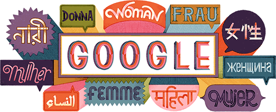 La festa della donna viene celebrata anche da google, con un caratteristico doodle nel quale la donna viene ricordata in molte lingue del mondo