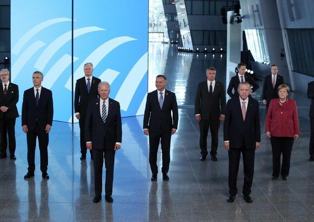 Vertice Nato: Draghi e Erdogan nella foto di famiglia. Biden: «Europa sappia che Usa ci sono»