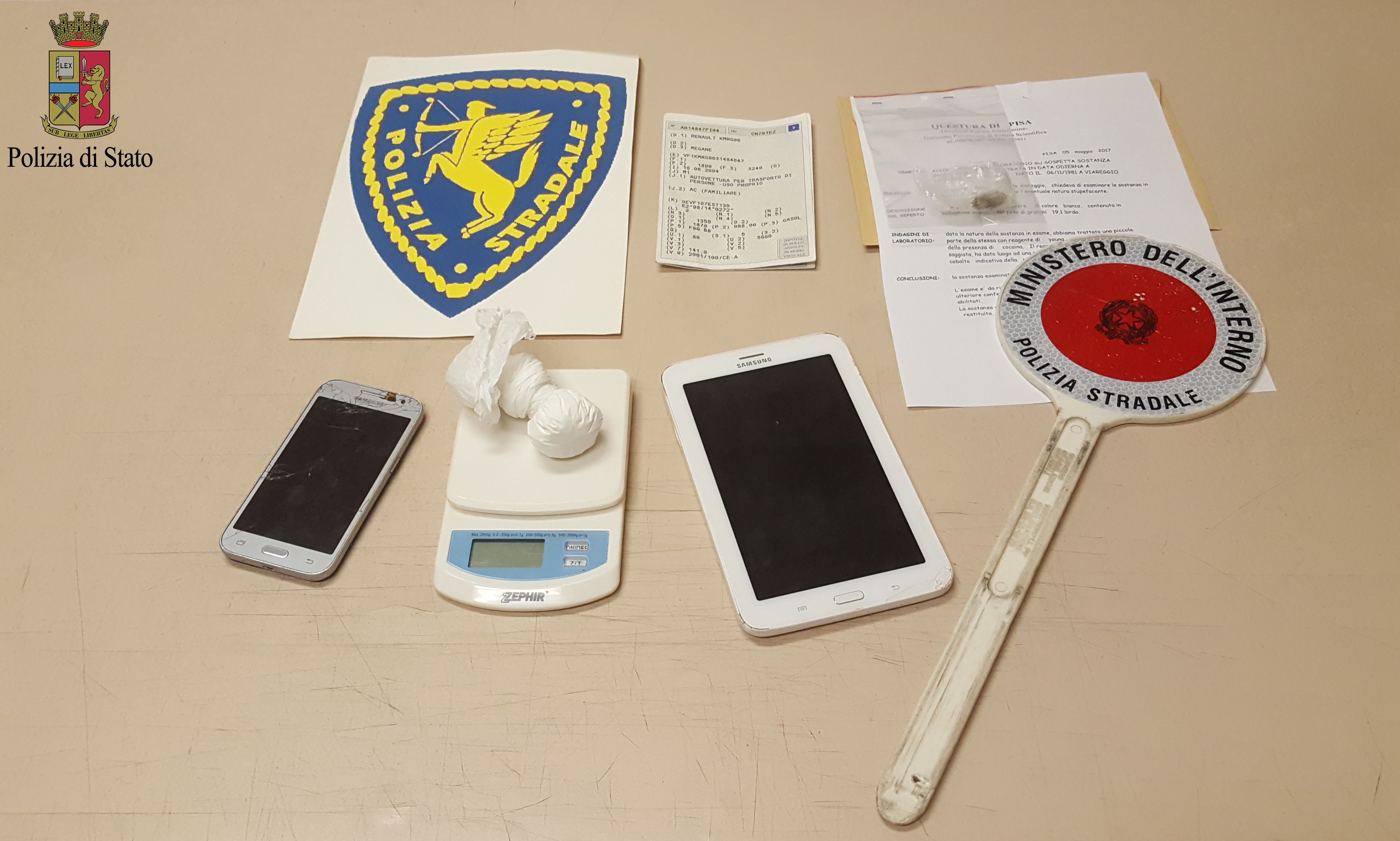 In casa i poliziotti gli hanno trovato anche un bilancino di precisione e mezzo grammo di marijuana. La Polstrada gli ha sequestrato, oltre allo stupefacente, anche la bilancina...