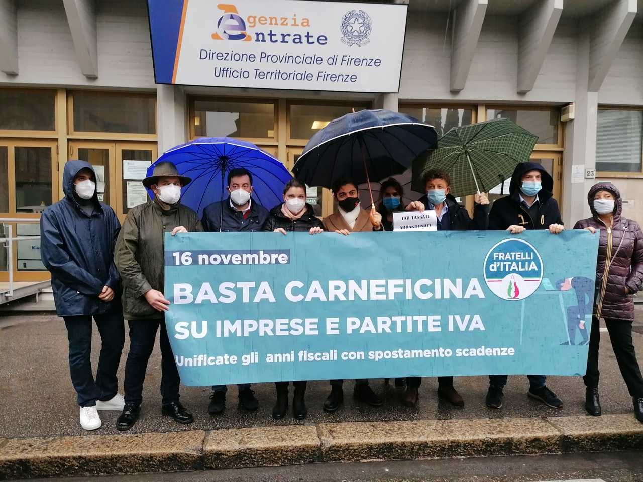 Flash mob di Fratelli d'Italia, questa mattina davanti alla sede dell'Agenzia delle Entrate di Firenze, in via Santa Caterina da Siena, in merito al passaggio della Toscana in...